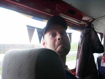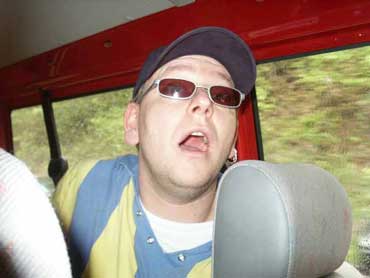 Rolo scheint das alles egal zu sein. Er befand sich in den Pinkelpausen (das sind aus seiner Sicht die Pausen, in denen er nicht pinkeln muß) in einem ganz, ganz merkwürdigen Zustand. Man meinte er wäre völlig abwesend, in Jubelbildern schwelgend. Jedoch zerstörte er des Öfteren jäh unsere Vermutungen, nämlich dann, wenn irgendwer, irgendwo in der roten Wolfsburger Caravelle eine Zigarette zündete. Dann kam nämlich sein obligatorisches "ej, könnt' ta vorne mal 'n Fenster aufmachen, ich kann das nicht ab wenn im Auto einer raucht...", sprachs und verlangte nach der nächsten Pause... |