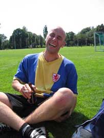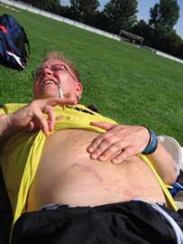 Während der Präsi seinen Mannschaftskameraden vorbildlich zeigte, was man unter einer vernünftigen Aufwärmung versteht... |