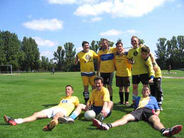 ...und man schmiss sich in die vom Präsi angelieferten Trikots um guter Dinge und siegessicher fürs Mannschaftsbild zu posieren. |