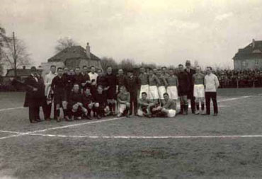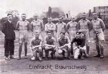 Dieses Bild zeigt die Eintracht gemeinsam mit einem unbekannten Gegner in den 20'er Jahren im Stadion an der Helmstedter Str. | Ebenso ein Bild der Helden aus den 20'er Jahren, auch hier weiß ich nicht, wer der Gegner ist. Ich hoffe, das Spiel wurde gewonnen. | |||||||||||||||||||||||||